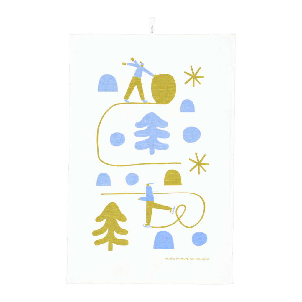 The joyful winter print is designed by Finnish illustrator Riikka Laakso. The Nordic kitchen towel is made from durable and high-quality fabric. Half-linen works great as a kitchen textile, as it absorbs moisture well and dries quickly. It leaves no lint when drying up glasses.